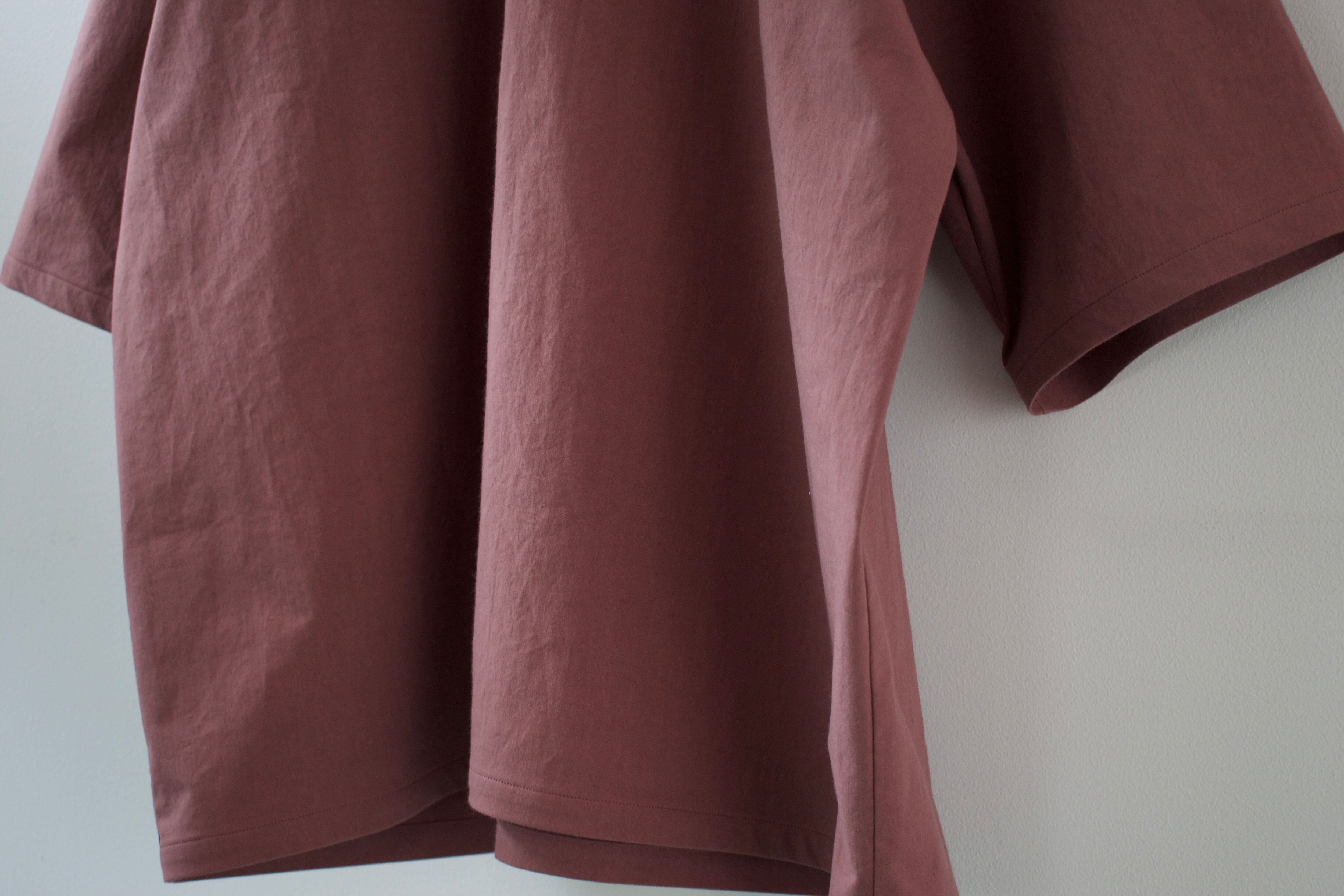 ルーズで丸みのあるシルエットは多少カジュアルな印象があったため、全体のシルエットが四角い印象になるよう、袖口幅を狭くして袖が外側にはねないようにし、身頃に余計なドレープが出ないよう身幅もいつもよりほんの少しだけ狭く。