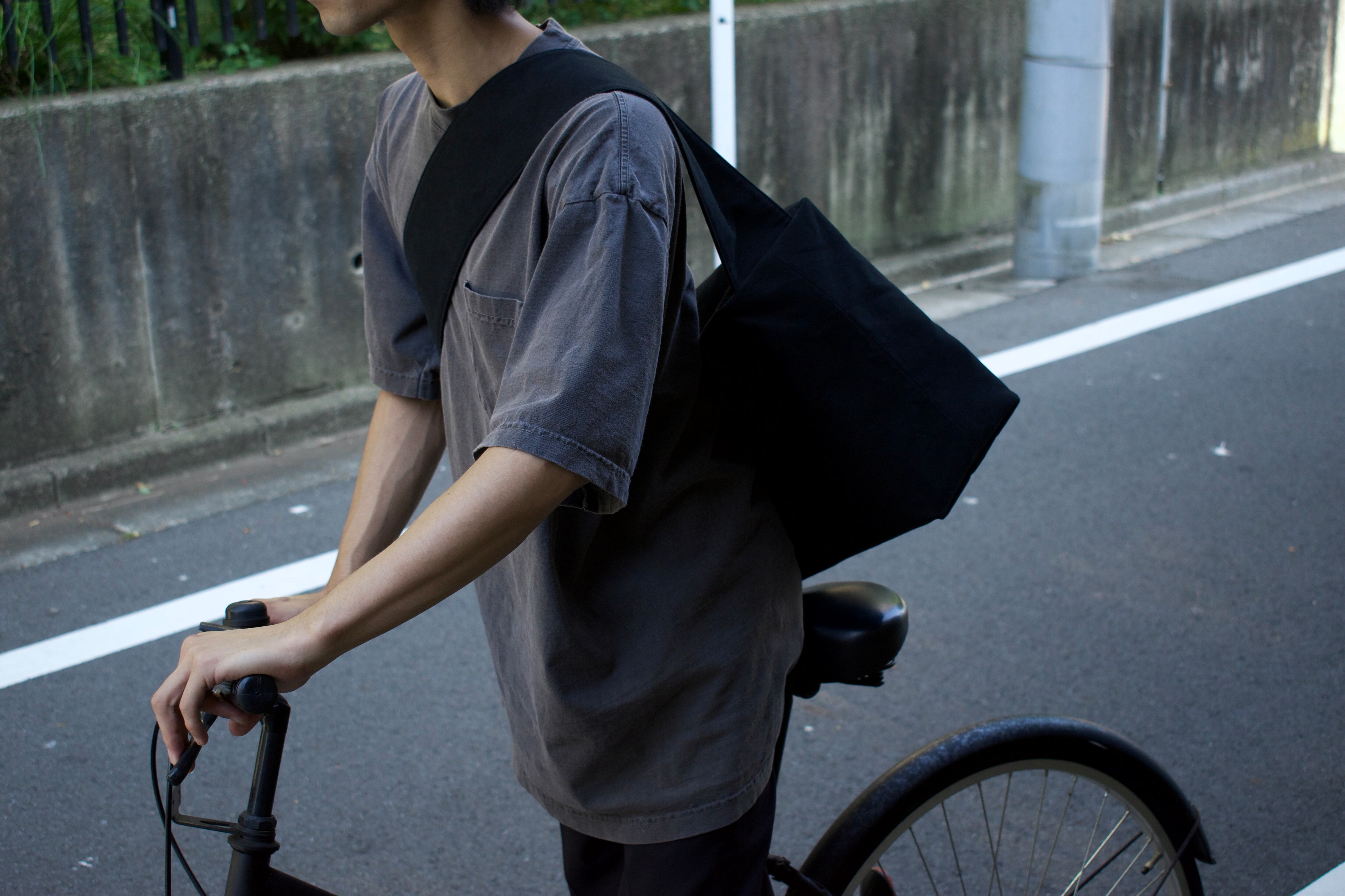 四角い立体のシルエットを形成するため、厚みと硬さのある岡山県産の六号帆布生地を裏地として使用しました。