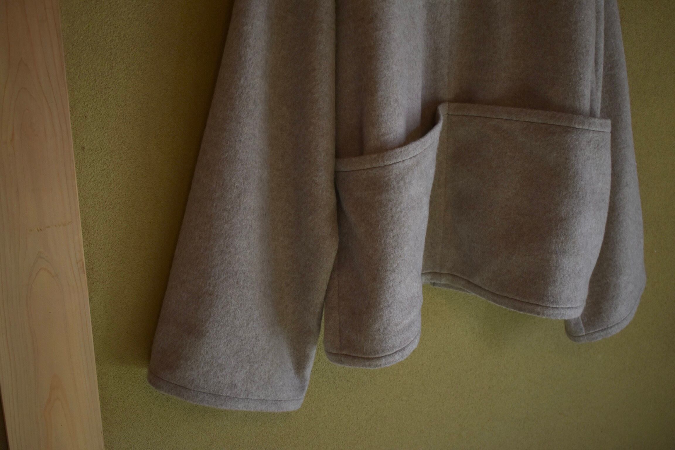 使用する生地は一種類。前面の大きなポッケ、背に映えるシルバーの三つボタン、パンツのポケットに手を入れたときの生地のたるみ具合を考えたゆとりのある袖など、シンプルな見た目ながらもシルエットにこだわった一品になりました。