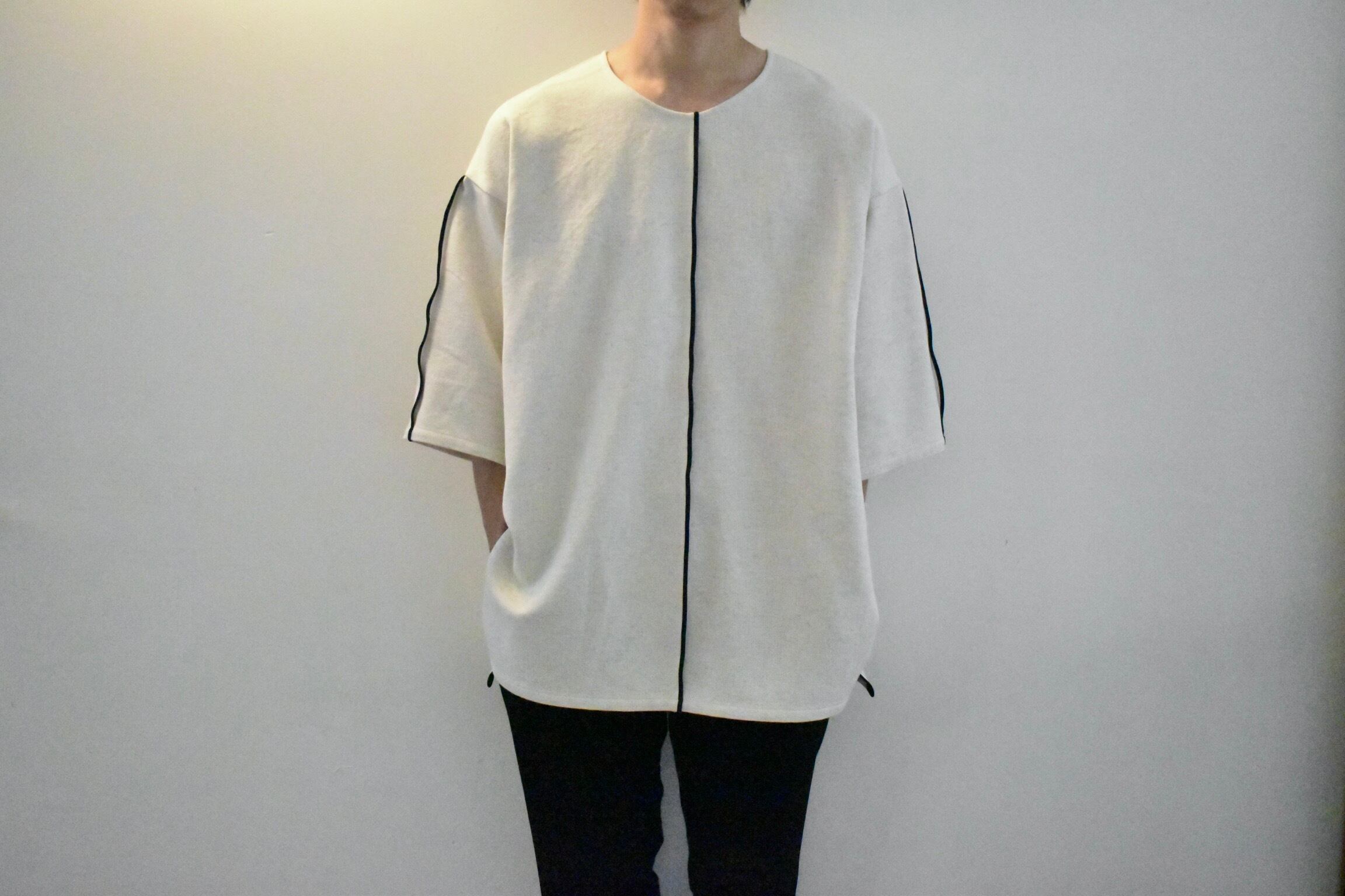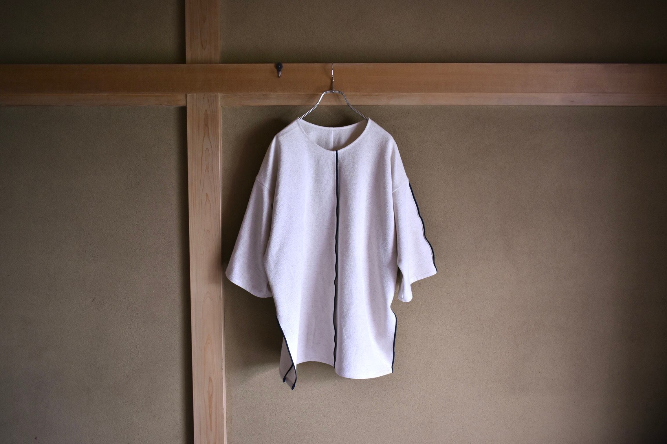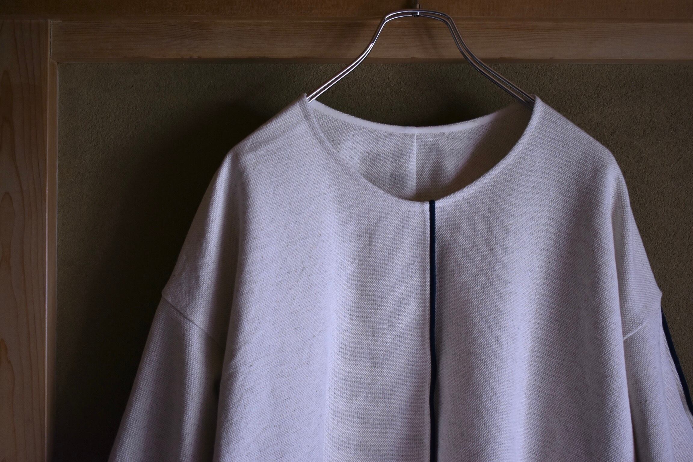 前後の見頃、袖、スリット部分には太めの巻きロック仕上げを施しました。