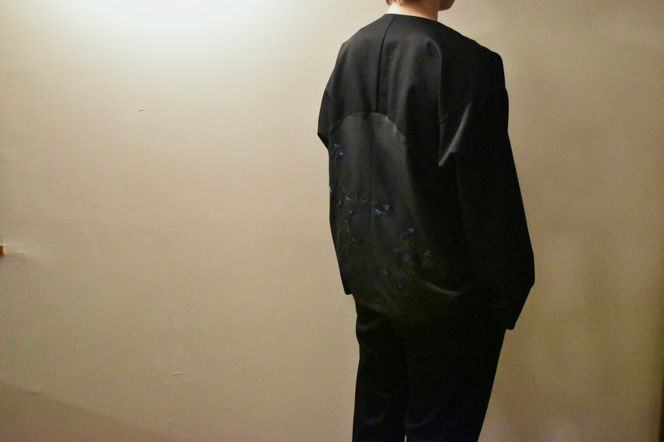 やわらかさのある黒色のウールギャバで仕立てた一品。