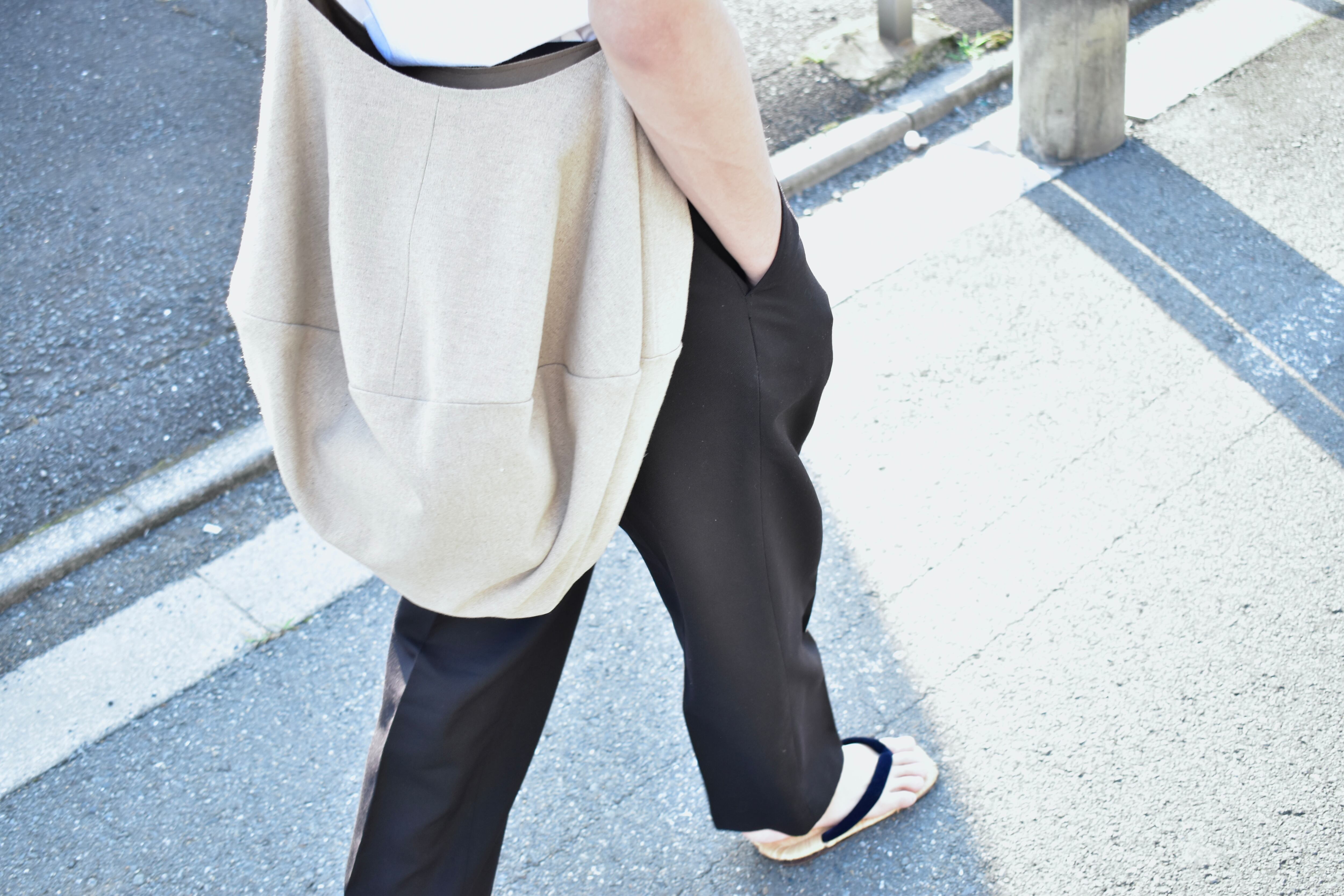 ボールに空気を入れるように、荷物を詰めれば詰めるほどより球体に、荷物が少ない場合でも生地にドレープが生まれ、荷物の量によって鞄の様々な表情をお楽しみ頂けます。