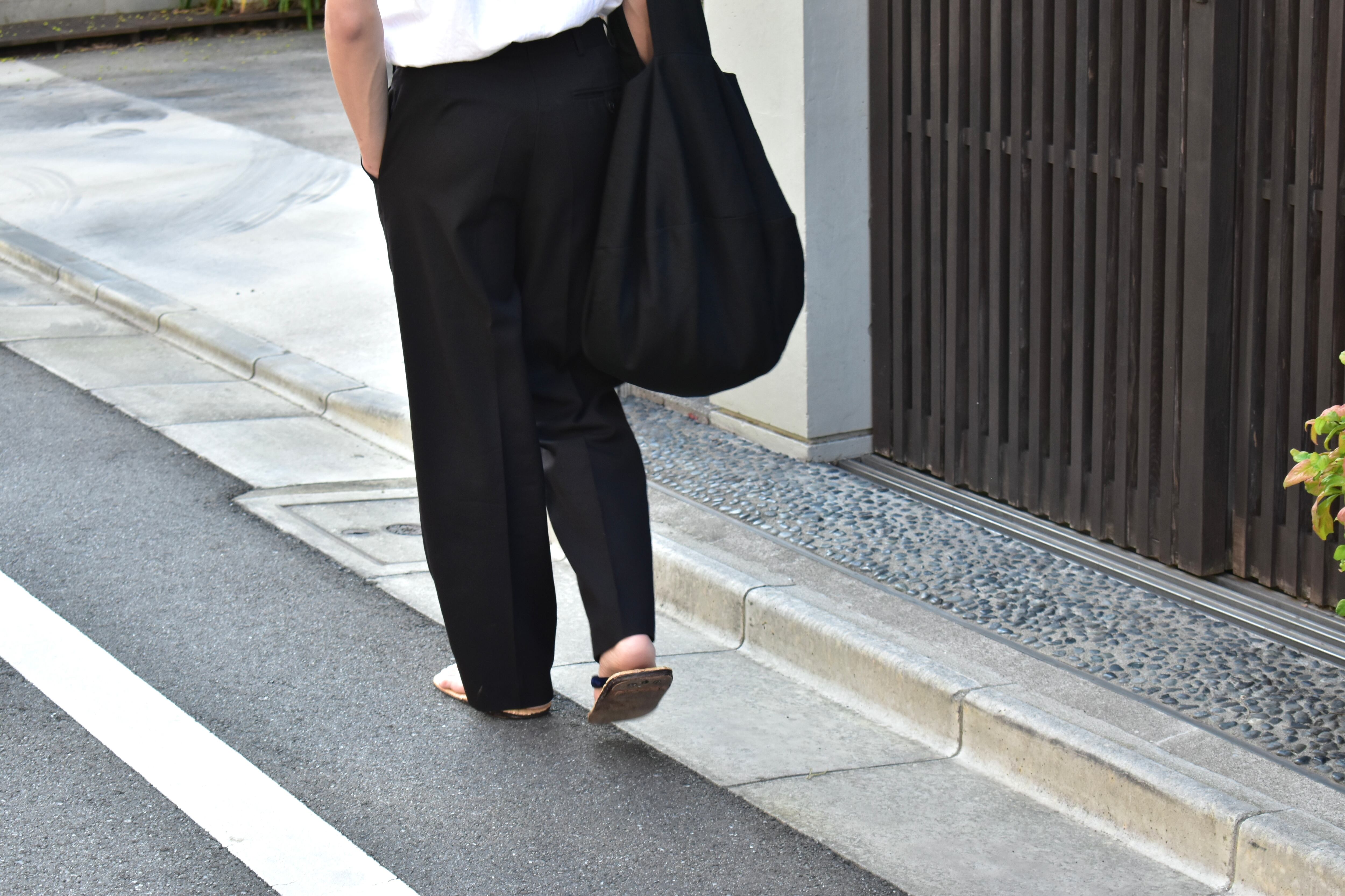 少しざらっとした綿ウールの生地はやわらかさがあり、鞄のドレープをより繊細に表現してくれます。
