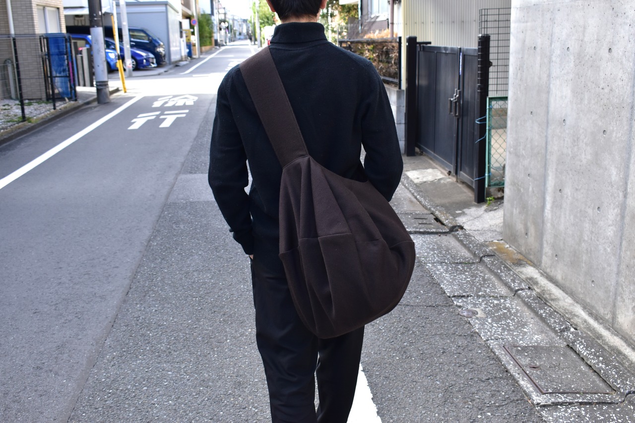 ボールに空気を入れるように、荷物を詰めれば詰めるほどより球体に、荷物が少ない場合でも生地にドレープが生まれ、荷物の量によって鞄の様々な表情をお楽しみ頂けます。