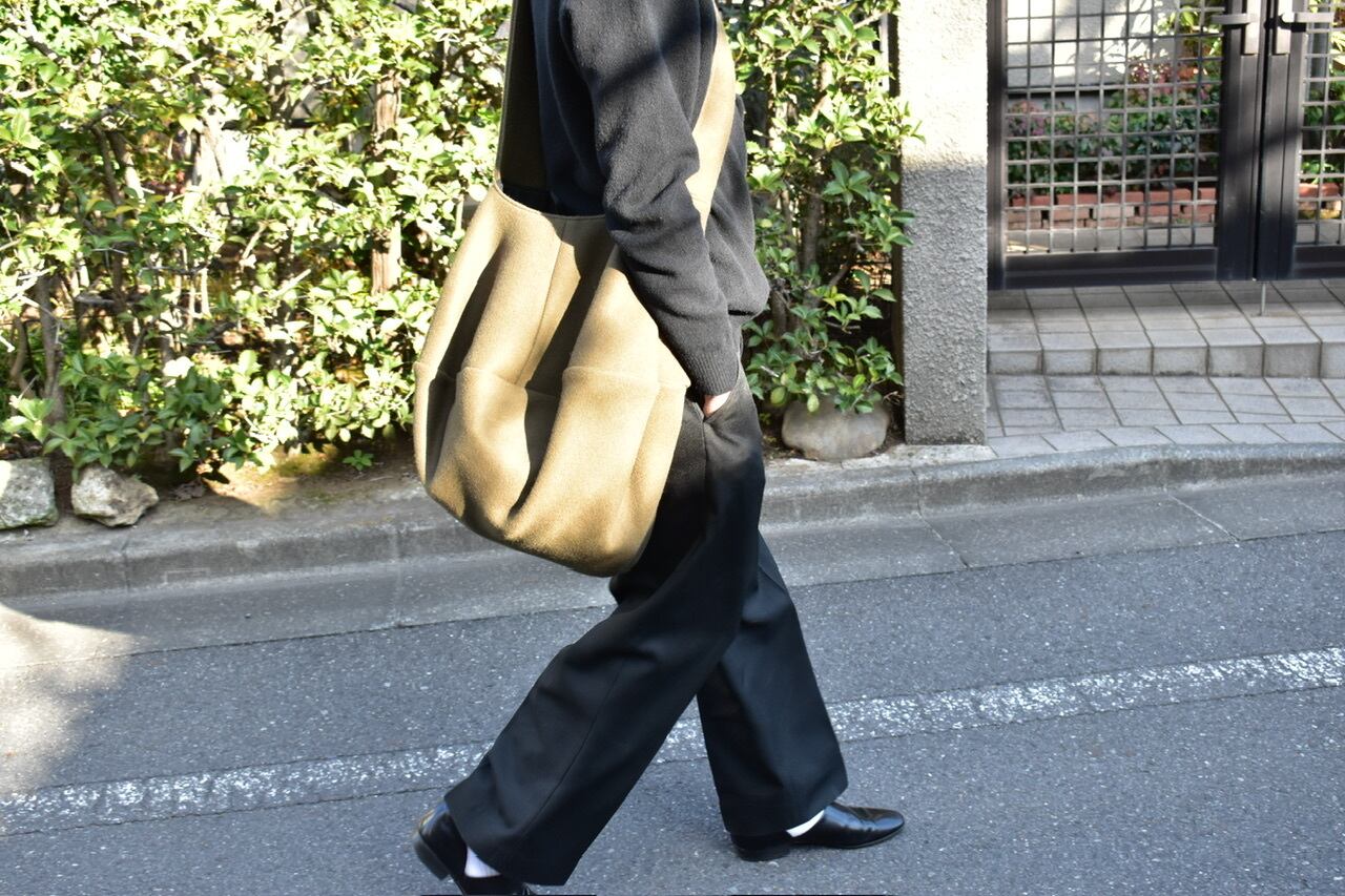 厚みと少し弾力感のあるウールの布で仕立てた一品。